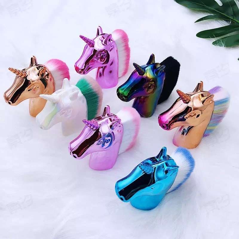 Brocha para polvo de maquillaje de unicornio arcoíris metálico -