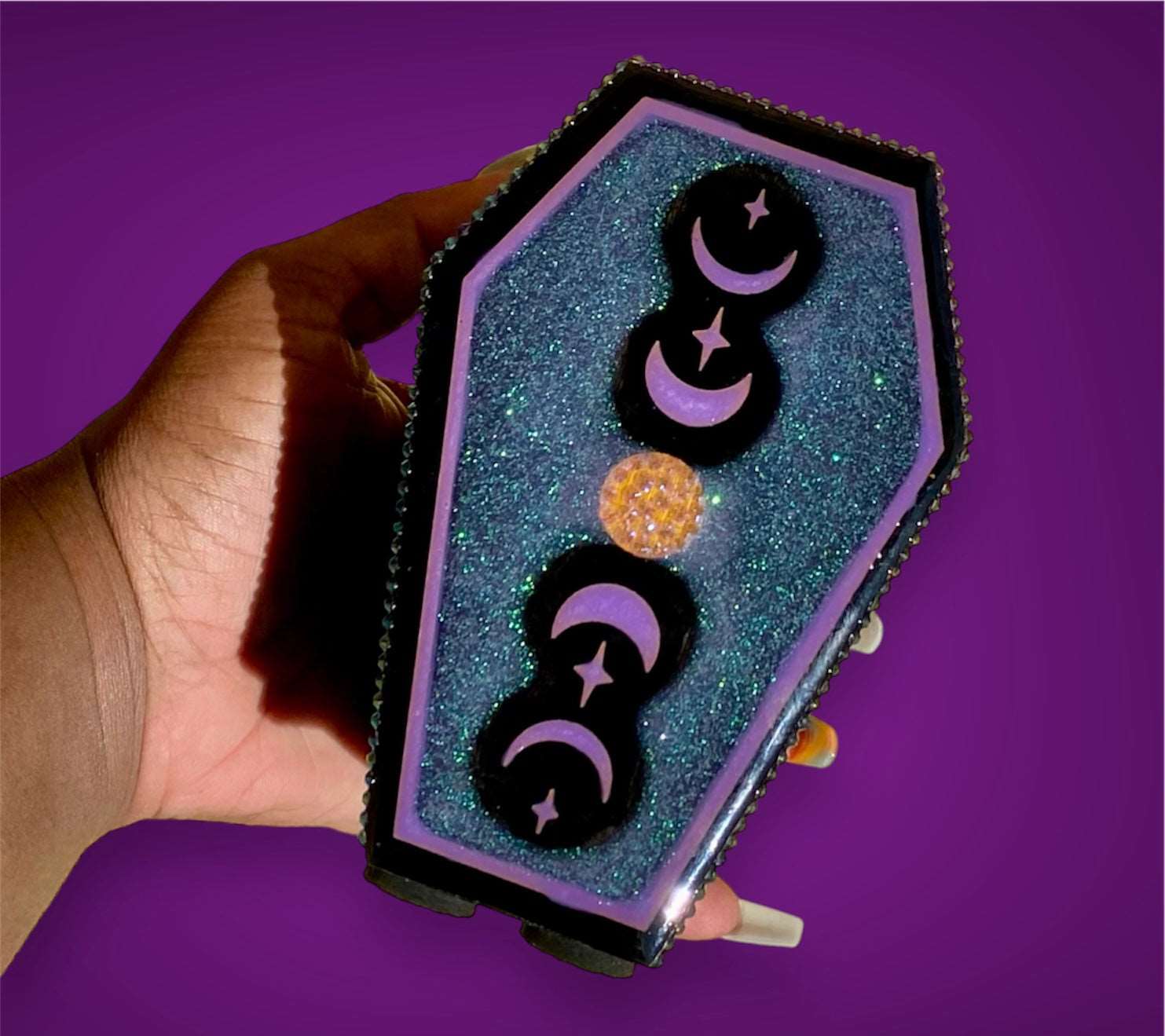 Soporte para brochas de maquillaje Gothic Moons Coffin - Púrpura -